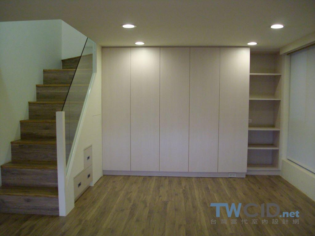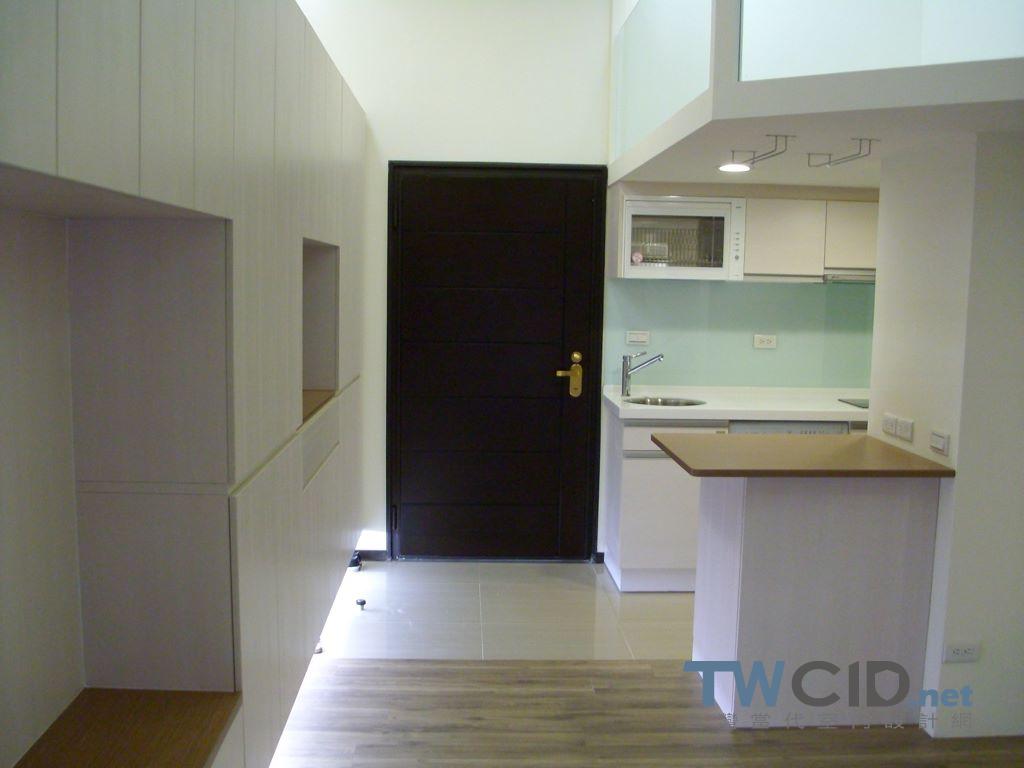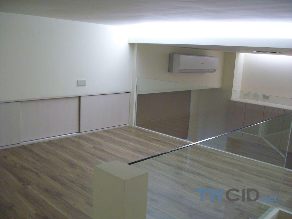 僅有一房的挑高空間,拆除隔間後做出兼容更衣室,工作區及小孩遊戲區的多功能區域