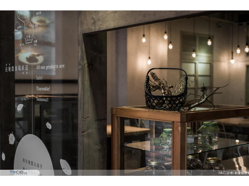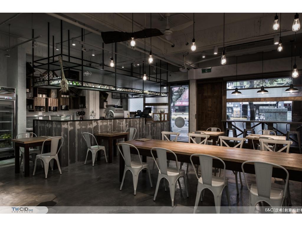 | 設計內容 | 在車水馬龍的都市中,砌築一處饗食與集思的天地,我們走進餐廳內部,E&C(苡希)創意設計營造賞心悅目的環境,提供賓客38個座位,讓他們以最輕鬆的姿態,在幸福時光中品嚐滋養大地的天然佳餚。設計師葉佳奇更以「工業風格」及「復古調性」圍塑空間主題,運用外露明管、水泥漆面、現代燈飾及實木家具等質樸肌理元素,賦予豐沛的設計想像。 |