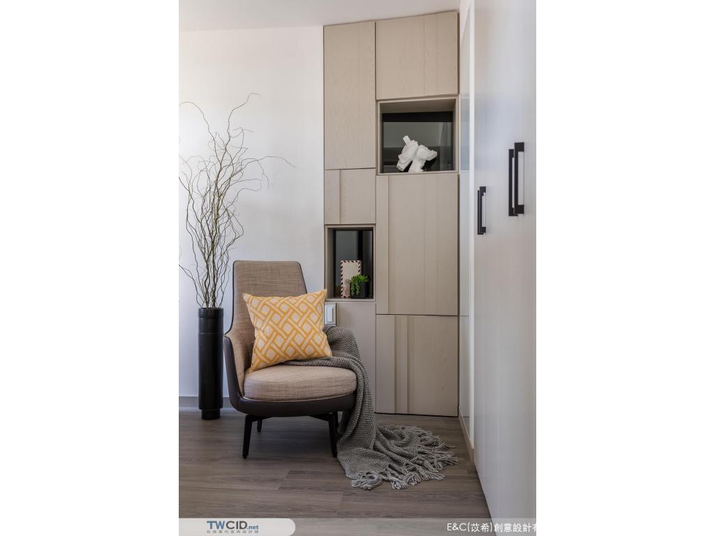 「家的幸福面貌,是由每位成員的笑靨所拼湊」,本案首要任務,就是完成屋主一家人的期待與要求,首先,設計師葉佳奇統整10年老屋格局,將原本不合比例的2+1房重新調整,並把廊道併於私人空間之中,除了放大兩間臥房的尺度,更增加一間獨立更衣室使用。 |